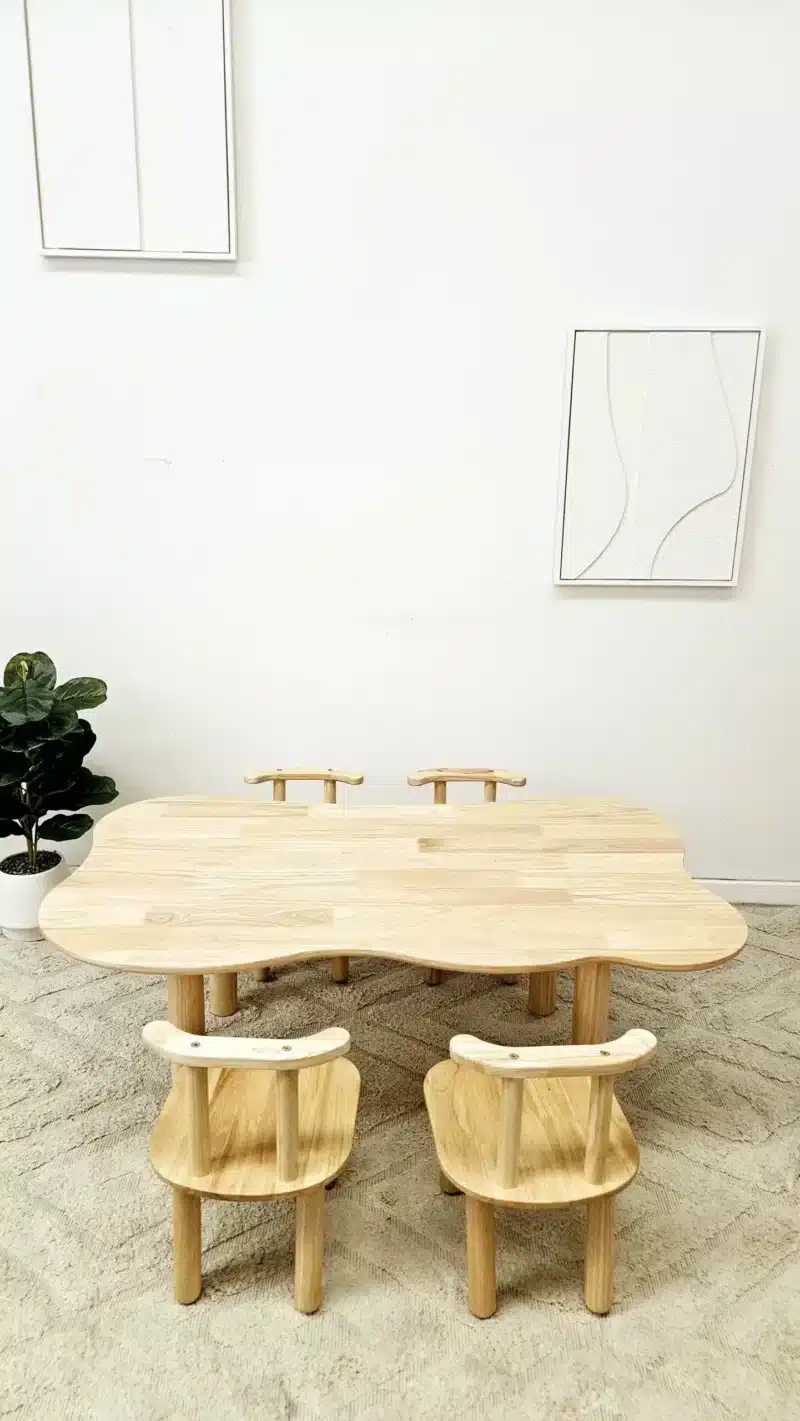 [vc_row][vc_column][vc_column_text]Introducing the children’s hardwood cloud table with 4 chairs! Crafted from high-quality, durable rubberwood, this set is perfect for kids to enjoy a range of activities, from drawing and playing games to having snacks and doing homework.
