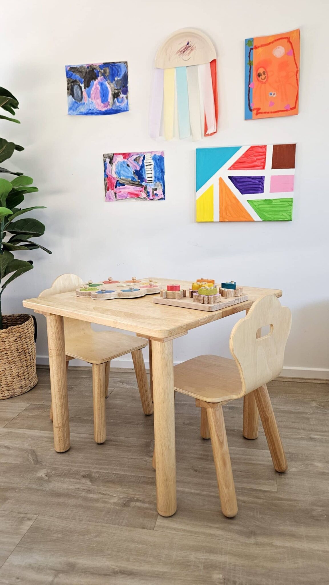 The square table features a smooth, polished surface and a natural wood finish, encouraging collaborative play, learning and creativity. Its rounded edges and sturdy legs ensure safety and stability, making it ideal for everyday use. Whether it’s for arts and crafts, puzzles or mealtimes, this table offers a spacious and inviting setting for young children.