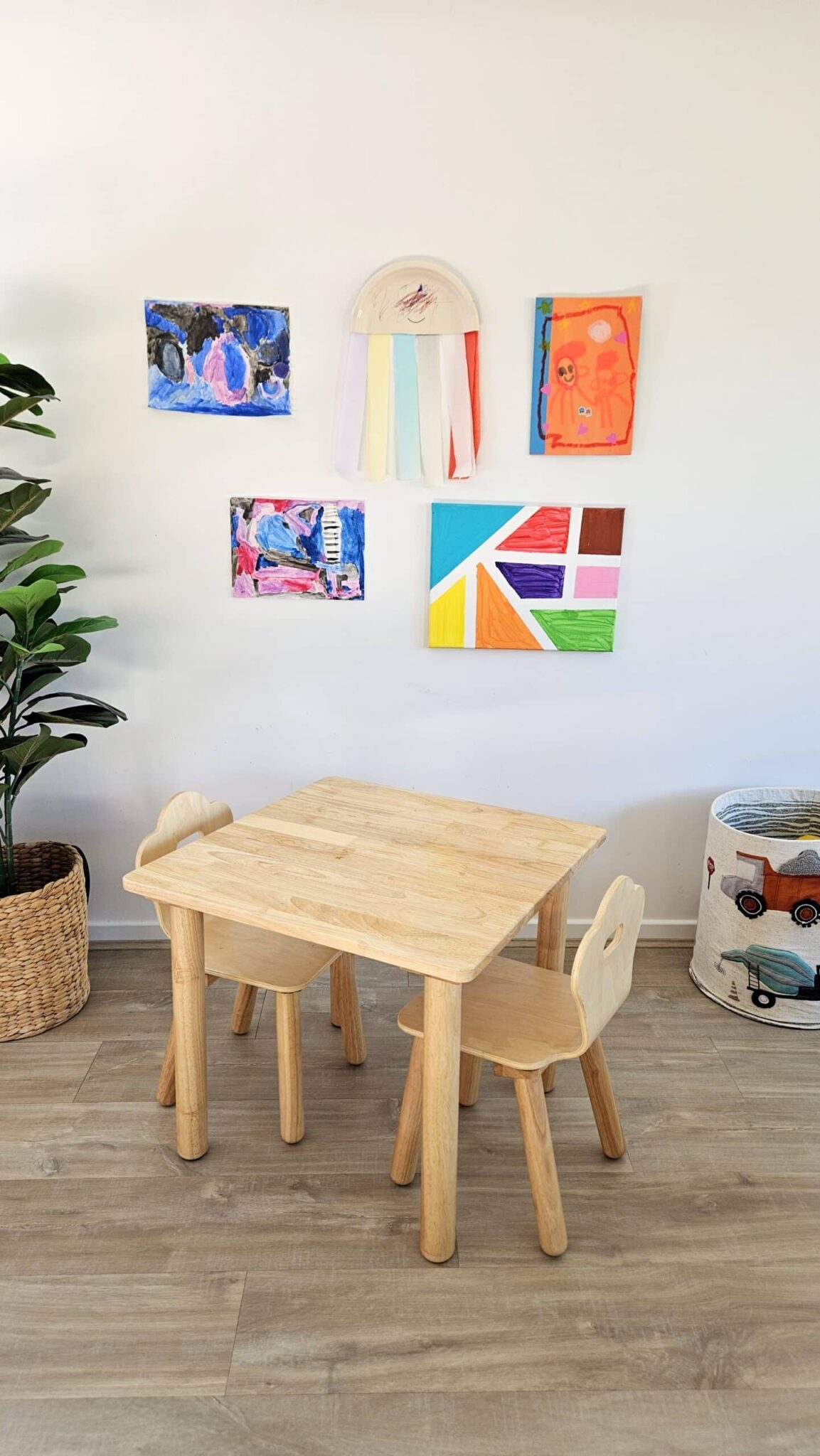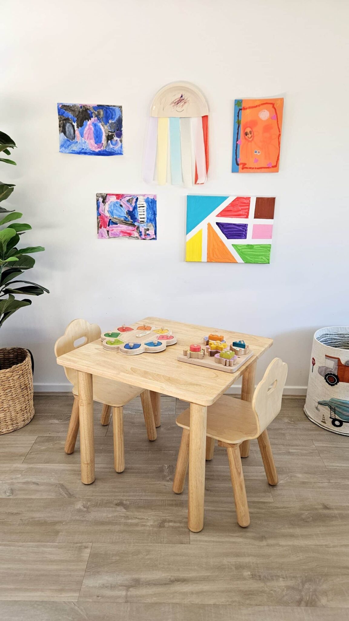 Introducing the Qtoys Classic Square Table and 2 Chairs Set – a perfect addition to any child’s playroom, classroom or learning space. Crafted from sustainably sourced wood, this beautifully designed furniture set combines timeless style with durability and child-friendly function.