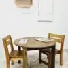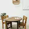 One of the unique features of this furniture set is the natural variation in color due to the wood’s inherent characteristics. These variations mean that each table and chair set is unique, adding a personalized touch to your home decor. The dimensions of the table are 75x75x50 cm, providing ample space for meals, crafts, or homework. The chairs, measuring 54x26x27 cm, are perfectly sized for children but can also comfortably accommodate adults.