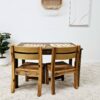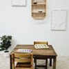 Finely finished rectangular table with 2 storage units under each side. This set is great for kindergartens, childcare centers and family use. The table comes with 2 stacking chairs. The set is made out of plantation acacia hard wood that is oiled and stained. All materials used are child-safe and non-toxic.